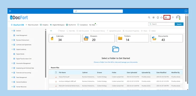 To create new content types, navigate to the “Settings icon” at the top right of the Landing page. See the image below for reference.